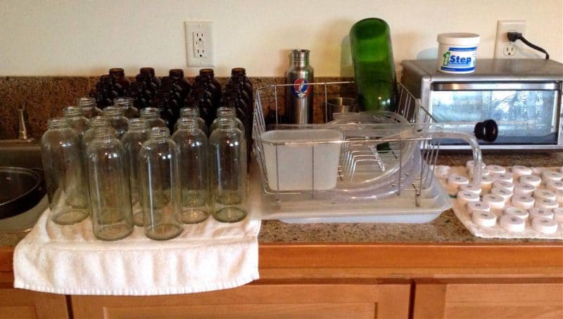 First and foremost in the bottling process, however, it is very important that you sanitize everything before you start. All of your bottles, lids and bottling equipment need to be sanitized. Basically anything and everything that will touch the brew. I like One Step because it’s super easy to use, but there are many different brands that work well.