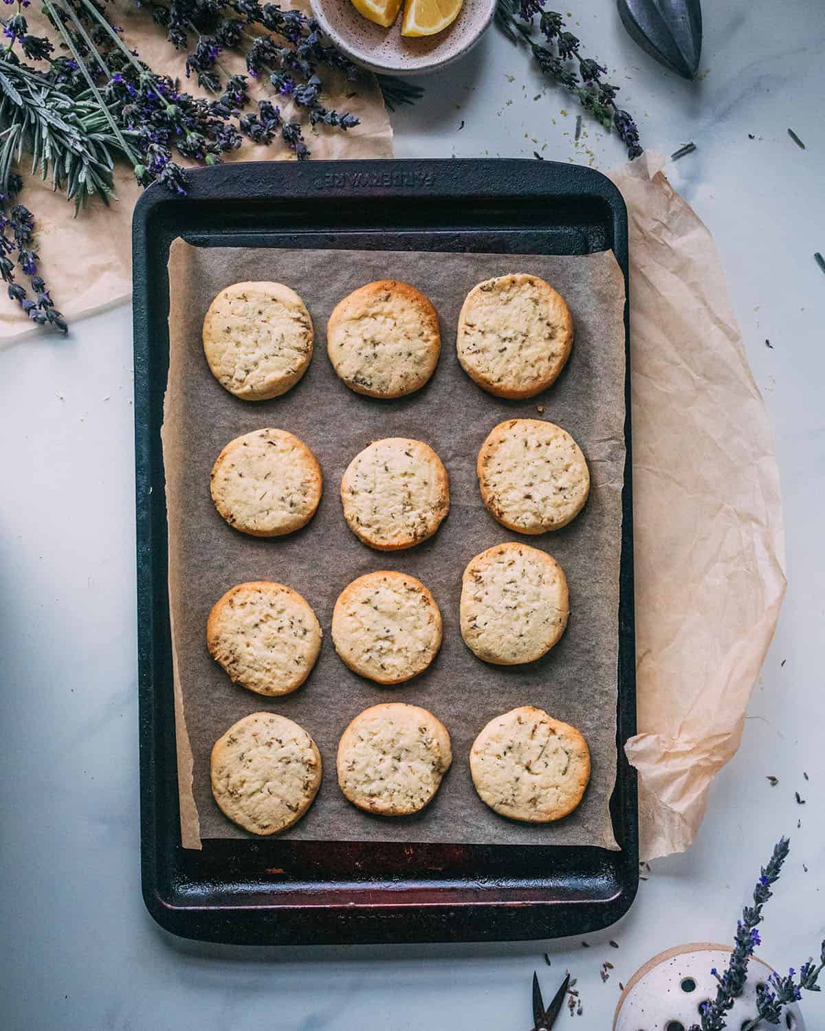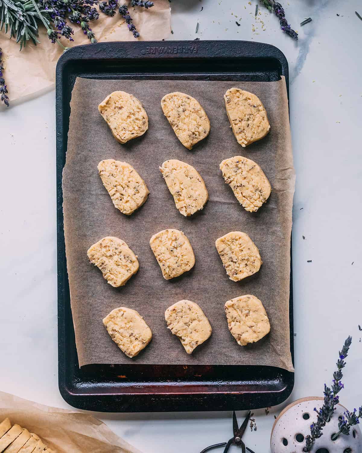 Excellent crumb on this cookie. If I make again, I will definitely half the amount of lavender.