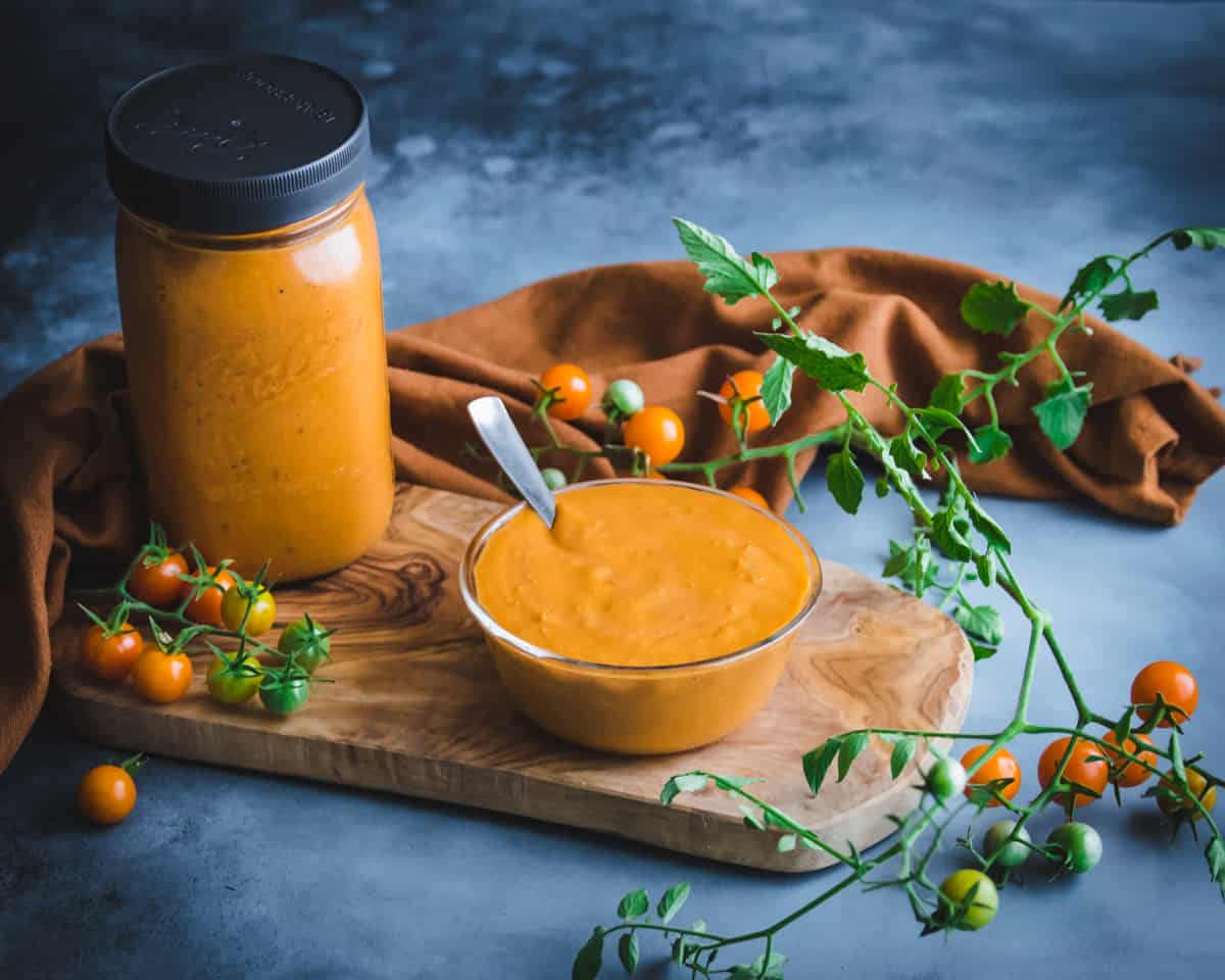 It works well on pasta, roasted veggies, chicken, pizza, or even as a dipping sauce!